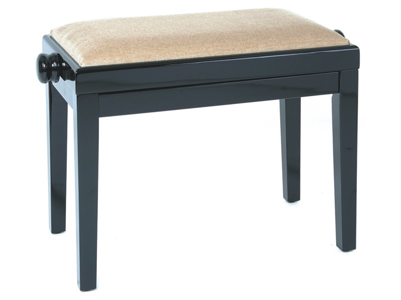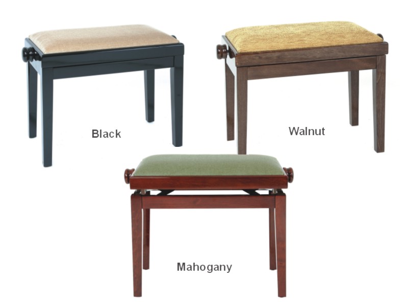 The Woodhouse MS601pg poly gloss adjustable piano stool. Available with tapered leg and a choice of 31 fabrics and three wood colours. Without music storage. A stain or gloss finish stool with music storage is available. This style of piano stool is also available in a satin or gloss finish with a choice of three legs types. UK postage is included in the price. These piano stools are all made to order and delivery normally takes between two to three weeks. |